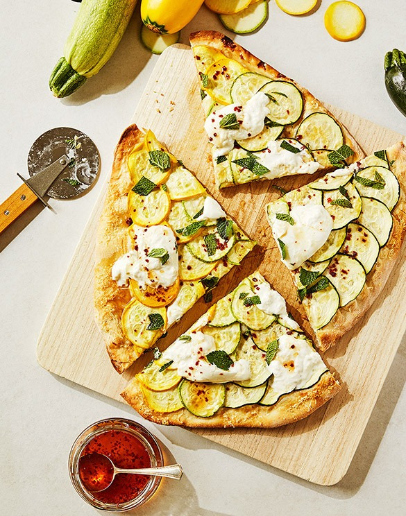 Pizze posyp mieloną miętą, odrobiną oliwy z oliwek, solą lnianą i miodem chili i podawaj.