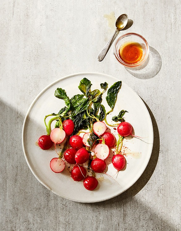 Rzodkiewki dokładnie umyj. Zachowaj liście, jeśli są ładne, ale bądź ostrożny, oczyścić całą ziemię - i uważaj, aby nie złamać łodyg podczas procesu.